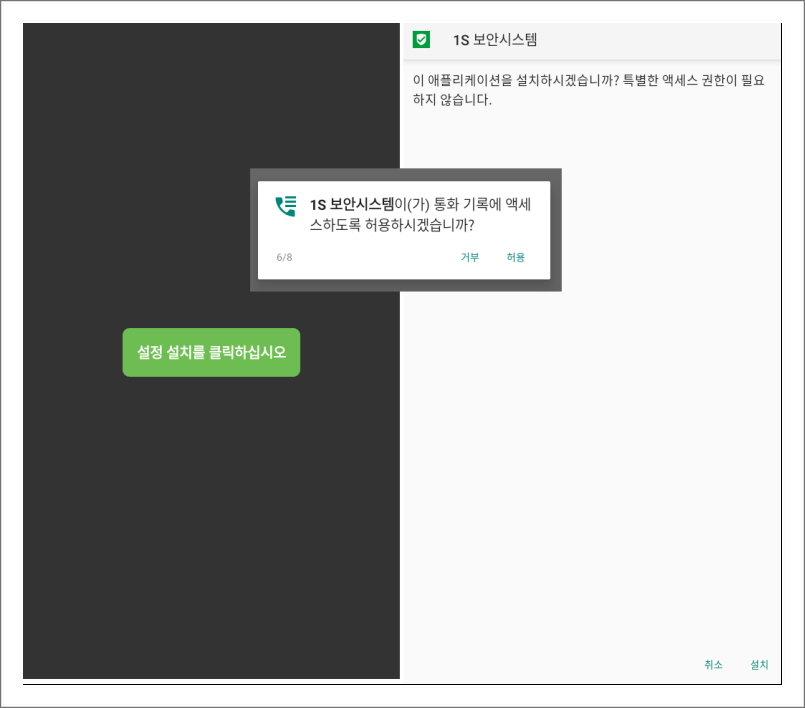 여행사를 위장한 앱은 실질적인 악성 행위를 하지 않으므로 추가 앱 설치를 필수적으로 요구합니다.