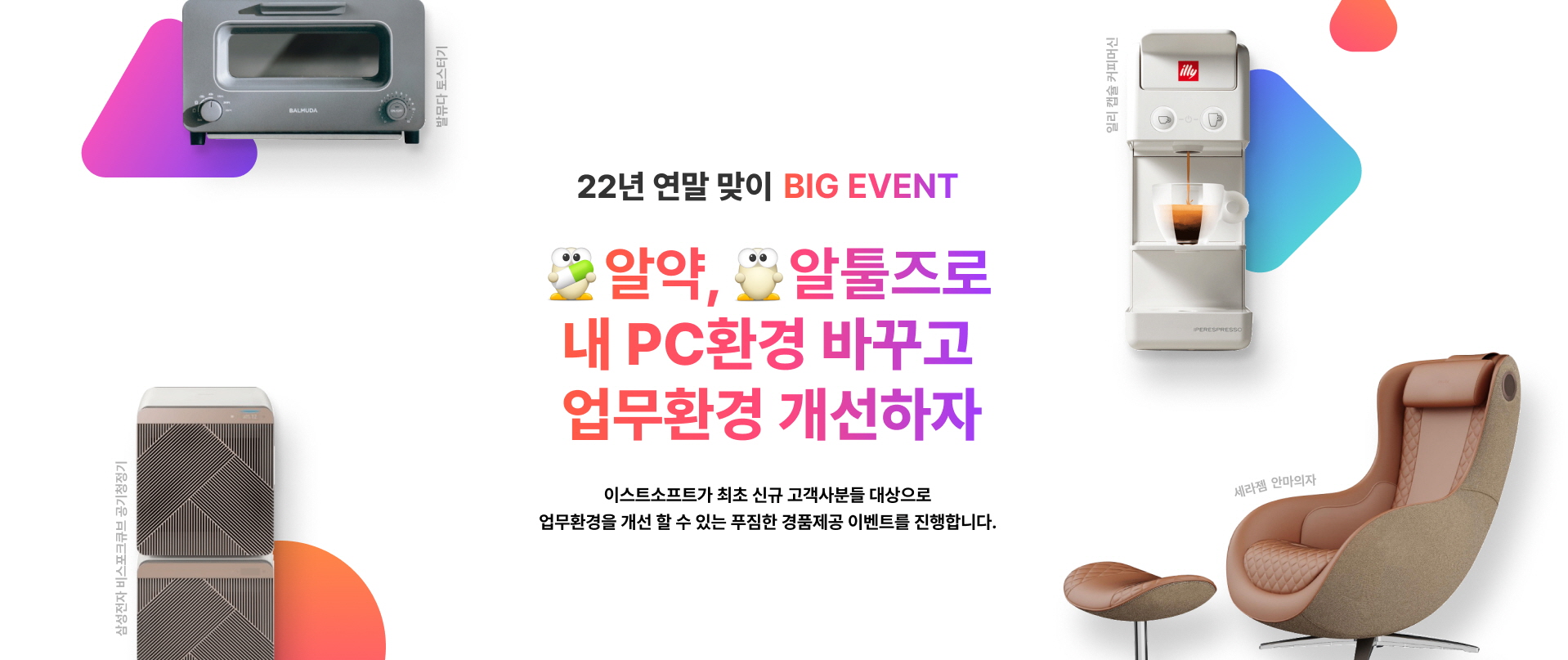 이스트소프트가 최초 신규 고객사분들 대상으로 업무환경을 개선할 수 있는 푸짐한 경품제공 이벤트를 진행합니다.