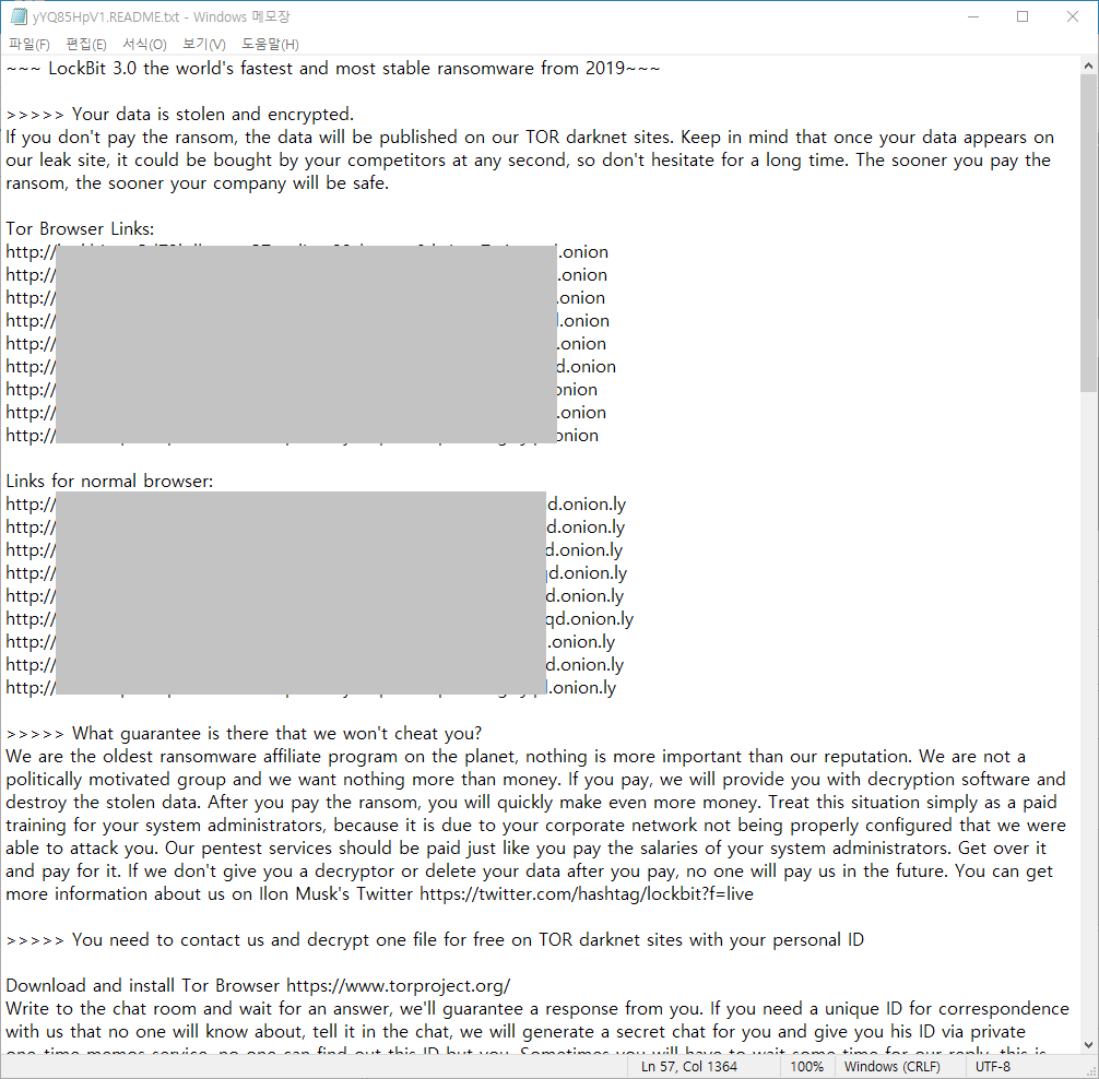 해당 파일은 LockBit 3.0 랜섬웨어로 실행 시 사용자 PC의 파일들을 암호화 후 랜섬머니를 요구합니다.
