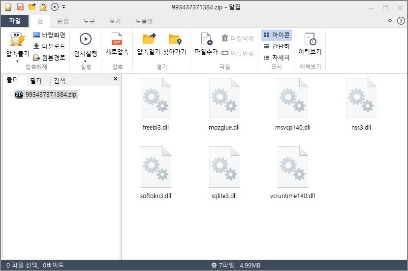 다운로드 되는 압축파일 내에는 정보 유출이 필요한 기능이 구현된 정상 DLL 파일들이 포함되어 있으며, dll 목록은 다음과 같습니다.