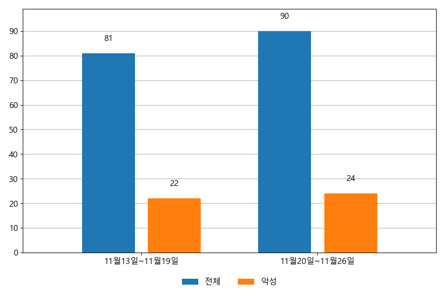 ESRC에서는 자체 운영 중인 이메일 모니터링 시스템의 데이터를 통해 이메일 중심의 공격이 어떻게 이루어지고 있는지 공유하고 있습니다. 다음은 11월 20일~11월 26일까지의 주간 통계 정보입니다.