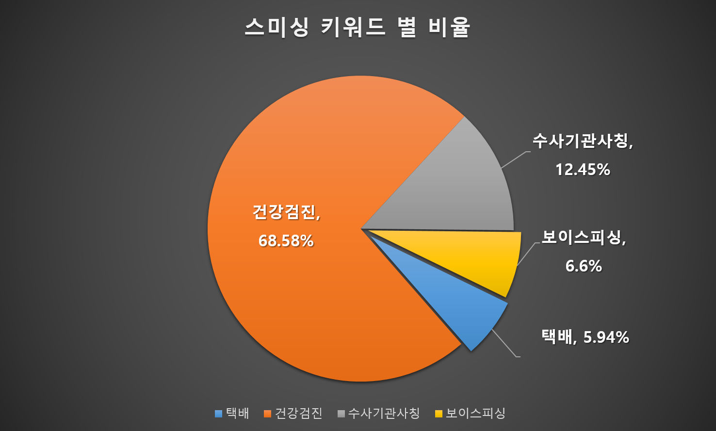 다음 그림은 스미싱 키워드 별 발견 비율을 보여주고 있습니다.