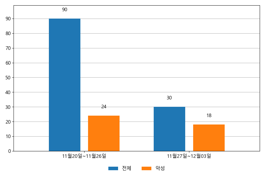 ESRC에서는 자체 운영 중인 이메일 모니터링 시스템의 데이터를 통해 이메일 중심의 공격이 어떻게 이루어지고 있는지 공유하고 있습니다. 다음은 11월 27일~12월 03일까지의 주간 통계 정보입니다.