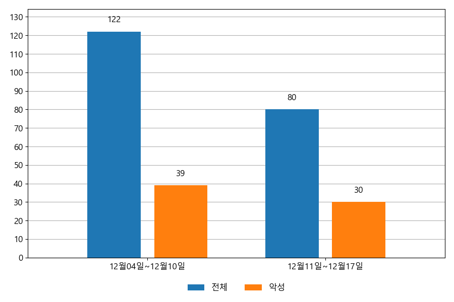 ESRC에서는 자체 운영 중인 이메일 모니터링 시스템의 데이터를 통해 이메일 중심의 공격이 어떻게 이루어지고 있는지 공유하고 있습니다. 다음은 12월 11일~12월 17일까지의 주간 통계 정보입니다.