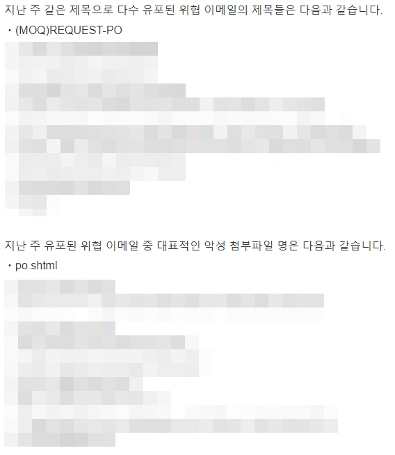 상기 이메일과 첨부파일을 확인할 경우 주의가 필요합니다.