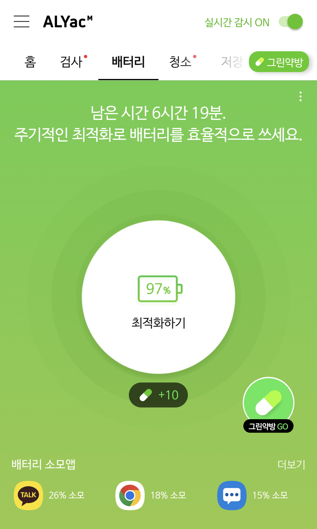 마지막으로, 추위로 인해 성능이 떨어질수록 기본적인 배터리 관리 방법으로 효율을 최대화해주는 것이 큰 도움이 됩니다. 백그라운드에서 실행되는 앱을 종료해 불필요한 배터리 소모를 낮춰주고, 상황에 맞는 스마트폰 설정으로 배터리를 최적화해주는 방법인데요. 효율적인 배터리 관리가 가능한 알약M 앱으로 미리미리 소중한 내 스마트폰 배터리를 관리해보는 것은 어떨까요?