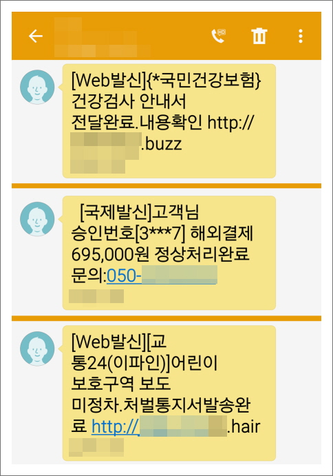 | [Web발신]{*국민건강보험}건강검사 안내서 전달완료.내용확인 hxxp://xxx.xxxx[.]buzz | 57% |