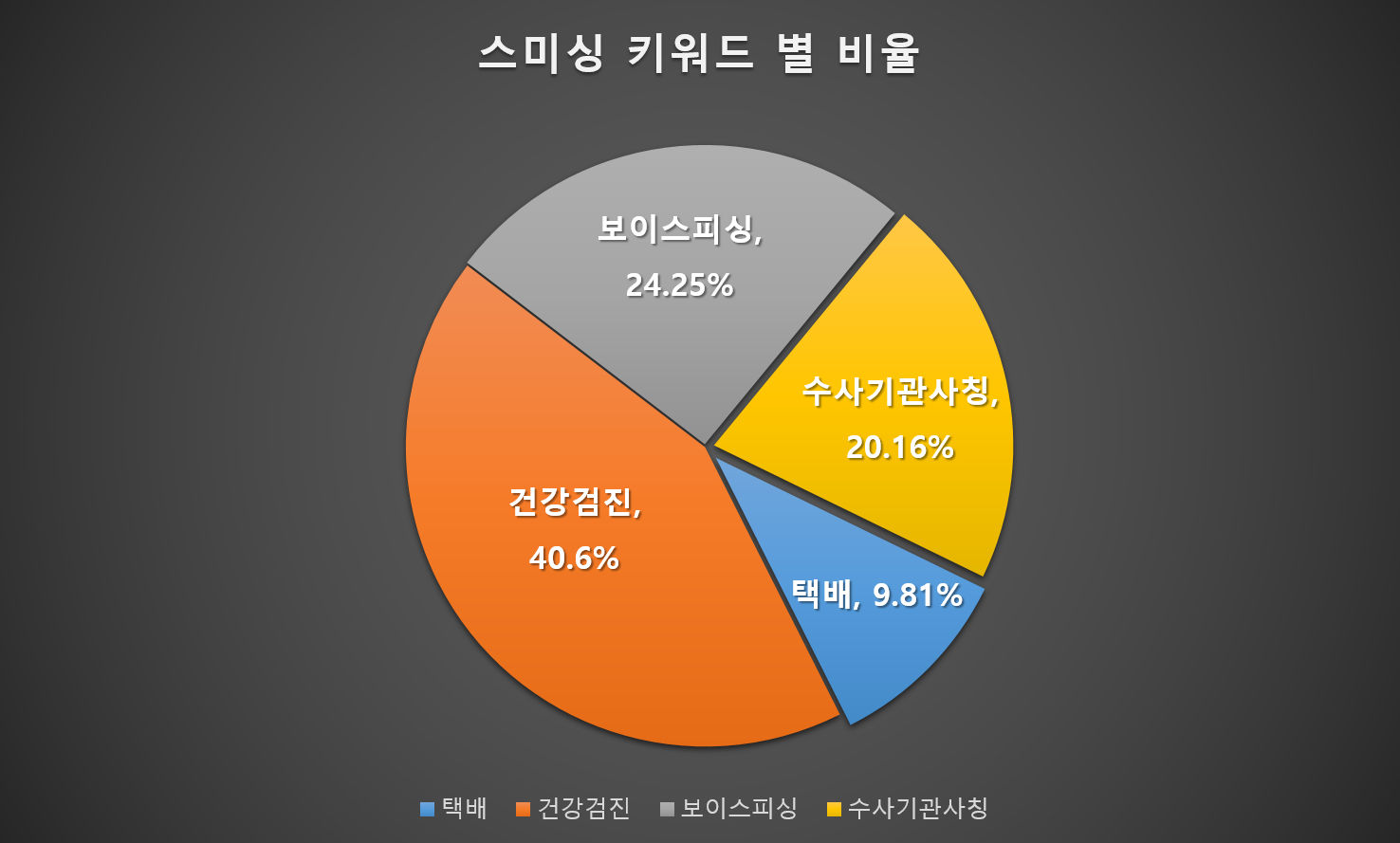 다음 그림은 스미싱 키워드 별 발견 비율을 보여주고 있습니다.