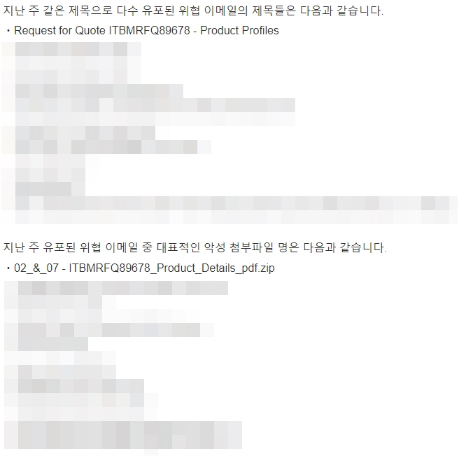 4. 대표적인 위협 이메일의 제목과 첨부파일 명