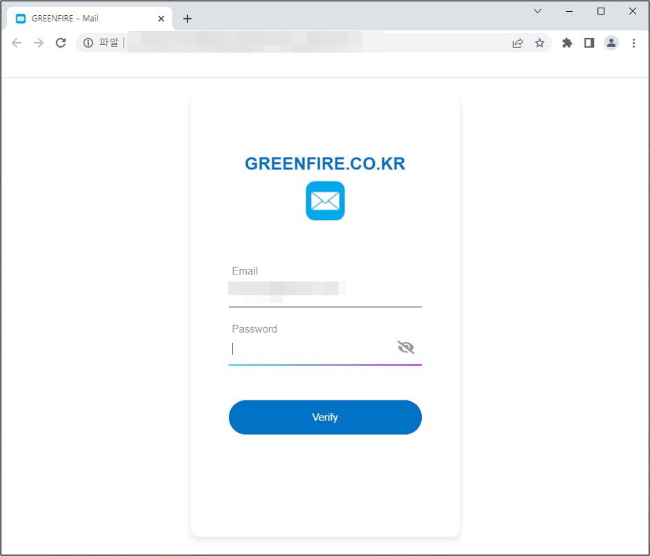 다운로드된 첨부파일은 HTM 파일이며 실행 시 위와 같은 피싱 페이지를 확인할 수 있습니다. 개인 정보를 입력하면 공격자의 서버로 데이터를 전송함으로 로그인은 홈페이지에서 검색 후 들어가는 것을 추천해 드립니다.