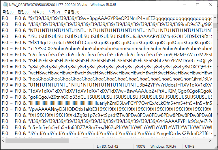 첨부 파일은 국내 대표적인 포털 검색 사이트의 메일을 활용하였고 ISO 파일로 되어 있습니다. ISO파일 내부에는 vbs 스크립트가 포함되어 있으며 악의적인 행위를 할 수 있는 악성코드를 추가로 내려받습니다. 이와 비슷한 메일들이 대량으로 유포 중이기에 담당자가 첨부 파일을 실행할 땐 주의가 요구됩니다.