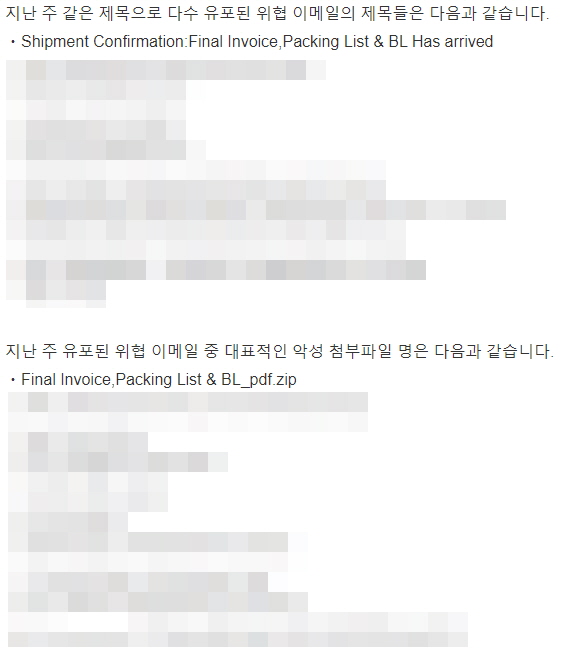 상기 이메일과 첨부파일을 확인할 경우 주의가 필요합니다.