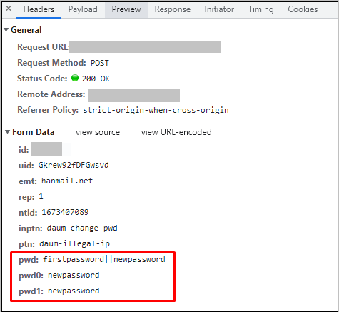 만일 사용자가 피싱 페이지에 비밀번호 정보를 입력하면, 입력한 정보는 고스란히 공격자 서버로 전송됩니다.