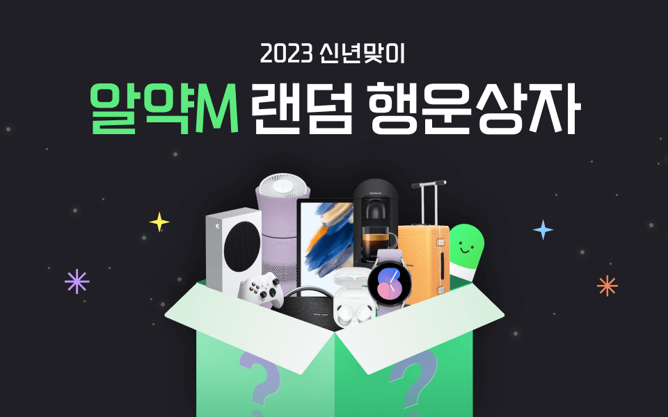 2023년 계묘년을 맞이하여 알약M에서 역대급 이벤트를 준비했습니다. 행운상자 열면 꽝 없이 랜덤상품이 와르르 쏟아지는 알약M 랜덤 행운상자 이벤트인데요. 달달한 간식거리부터 역대급 잇 아이템까지, 33일간 매일 쏟아지는 풍성한 선물 놓치지 말고 받아가세요!