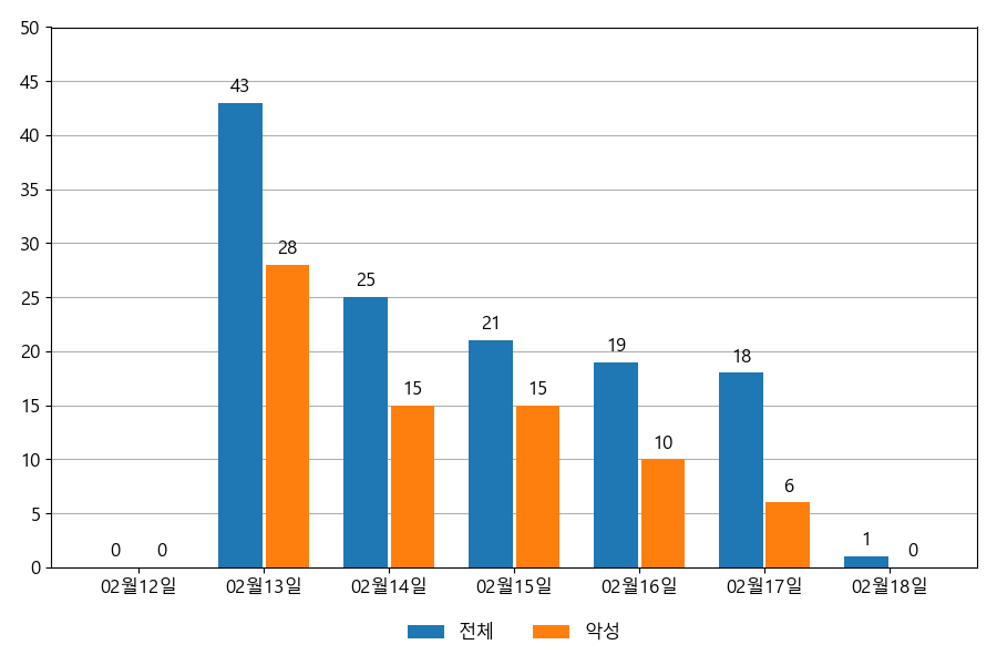 일일 유입량은 하루 최저 1건(악성 6건)에서 최대 43건(악성 28건)으로 일별 편차를 확인할 수 있습니다.