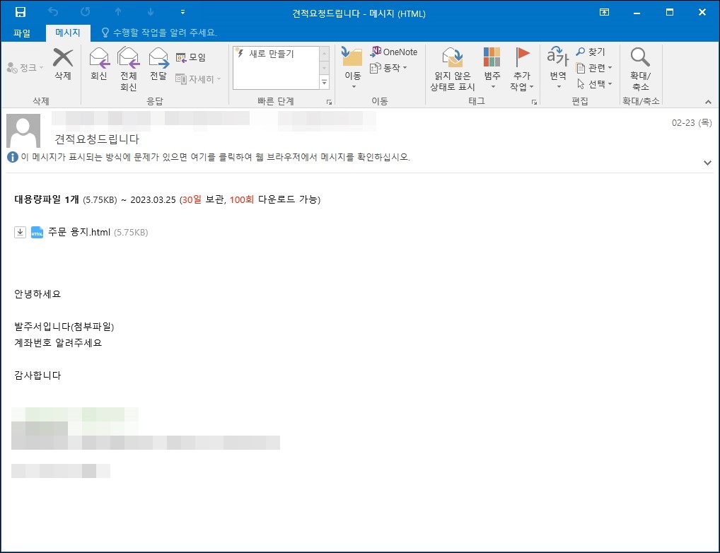 상기 이메일과 첨부파일을 확인할 경우 주의가 필요합니다.