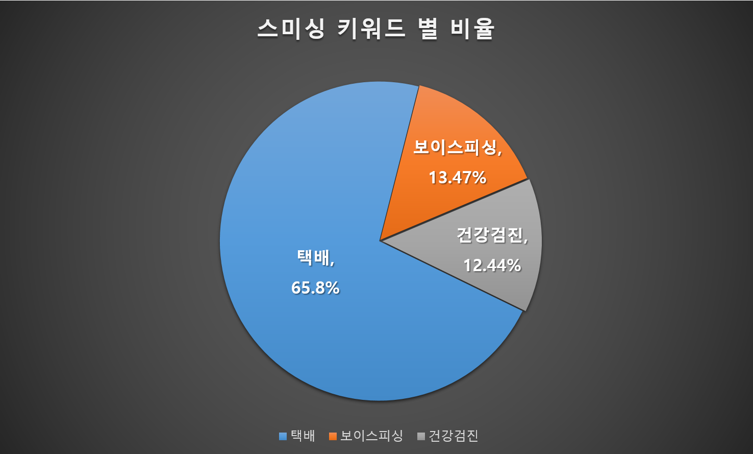 다음 그림은 스미싱 키워드 별 발견 비율을 보여주고 있습니다.