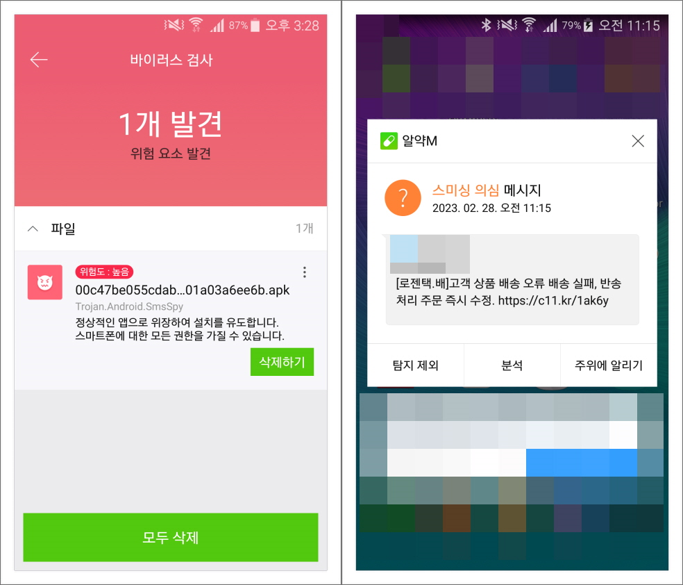 [그림 4] 스미싱 악성 앱 탐지 화면
