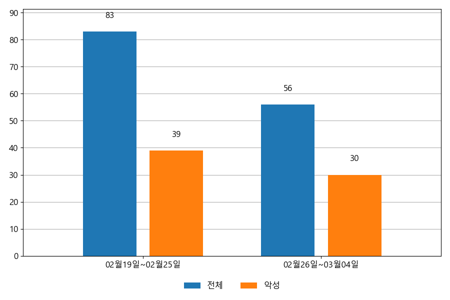 ESRC에서는 자체 운영 중인 이메일 모니터링 시스템의 데이터를 통해 이메일 중심의 공격이 어떻게 이루어지고 있는지 공유하고 있습니다. 다음은 02월 26일~03월 04일까지의 주간 통계 정보입니다.