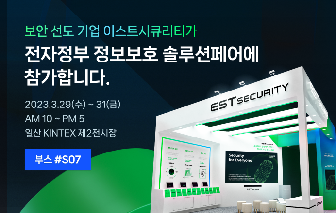 이스트시큐리티는 3월 29일(수)부터 31일(금)까지 KINTEX에서 열리는 eGISEC 2023 전자정부 정보보호 솔루션페어에 참가하여 보다 확장된 보안 대응 방법을 제시합니다.