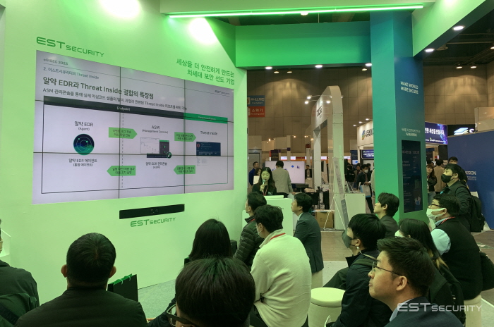 이번 전시회에서 이스트시큐리티는 보다 확장된 보안 대응 방법을 제시하였는데요. 이스트시큐리티 부스에서는 문서중앙화 솔루션 시큐어디스크&인터넷디스크와 악성코드 위협 대응 솔루션 Threat Inside와 결합하여 이상적인 엔드포인트 보안 체계를 구축하는 알약 EDR을 직접 확인할 수 있었습니다.