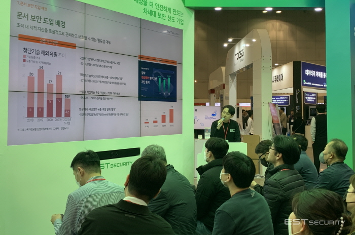 또한 이스트시큐리티 부스에서는 이스트시큐리티 솔루션을 처음 접하는 참관객분들의 이해를 돕고자 오전에는 '위협 인텔리전스 활용과 대응 솔루션', 오후에는 '문서 보안 기반의 솔루션 소개와 주요 사례'이라는 주제로 매일 총 2차례씩 미니세미나가 진행되었습니다.