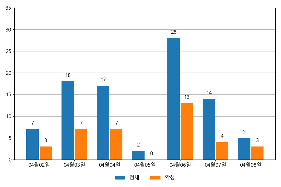 일일 유입량은 하루 최저 2건(악성 3건)에서 최대 28건(악성 13건)으로 일별 편차를 확인할 수 있습니다.