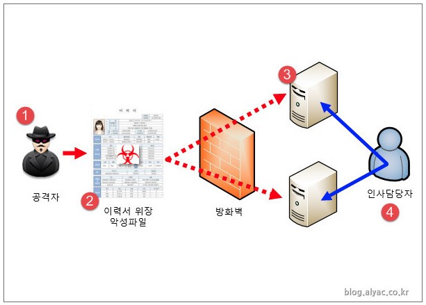 이번에 발견된 악성코드는 "이XX_입사지원서.hwp.scr" 파일명으로 채용 지원 문서로 위장했습니다.