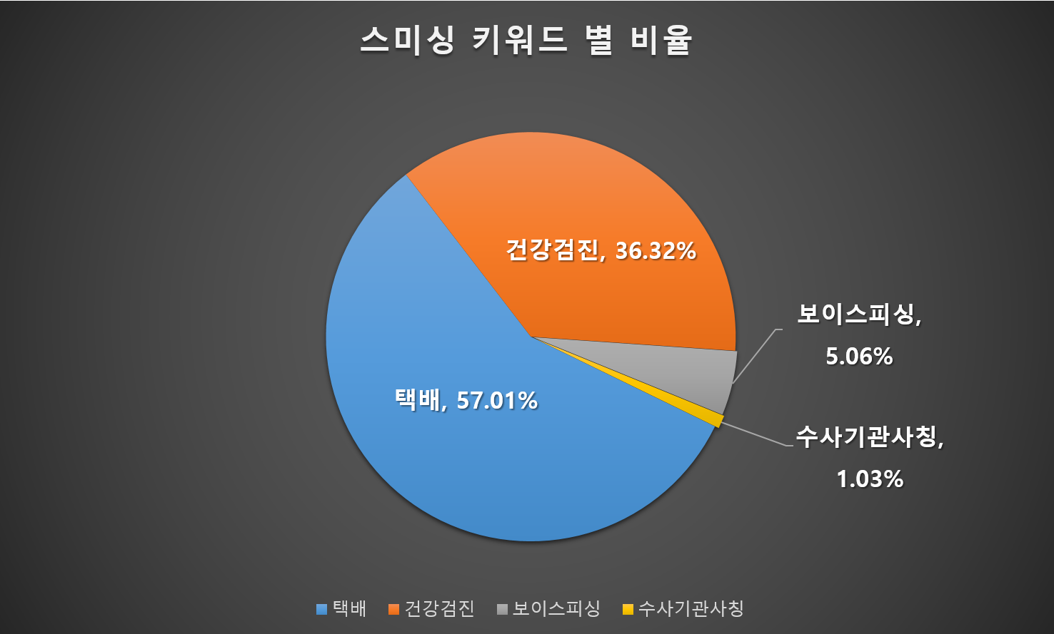 다음 그림은 스미싱 키워드 별 발견 비율을 보여주고 있습니다.