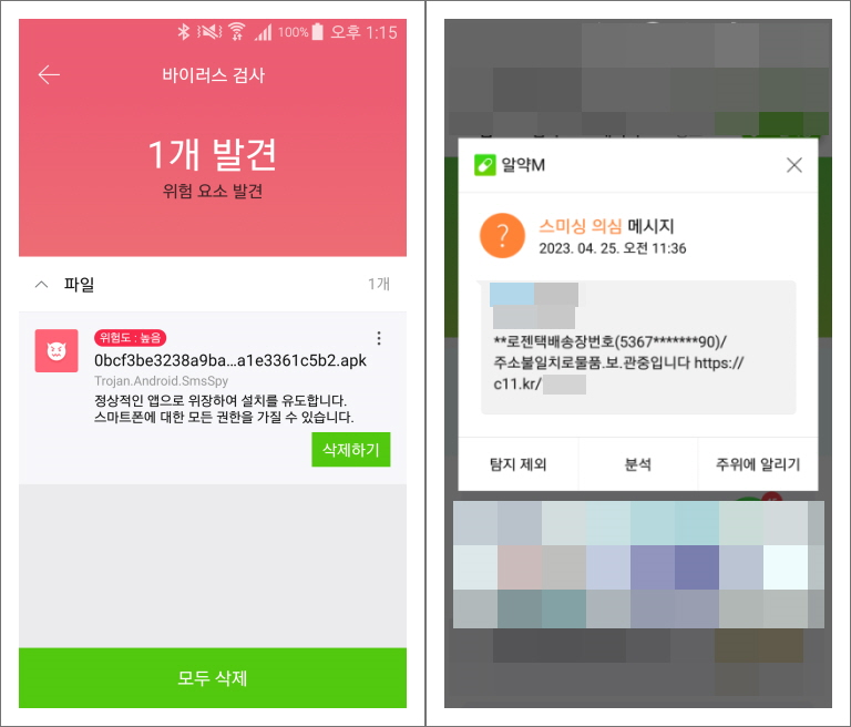 [그림 4] 스미싱 악성 앱 탐지 화면