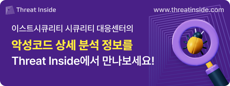 안녕하세요? 이스트시큐리티 ESRC(시큐리티대응센터)입니다.