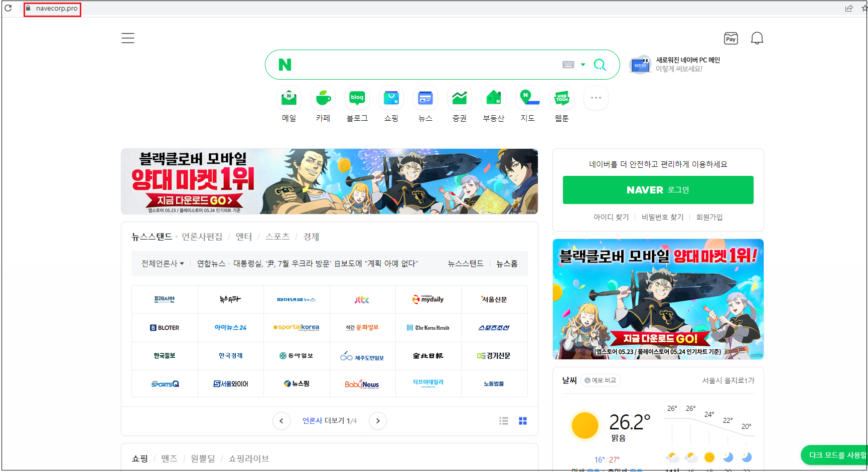 해당 피싱 페이지는 매우 정교하게 제작되어 있으며, 실제 네이버 페이지와 매우 유사하게 동작합니다.