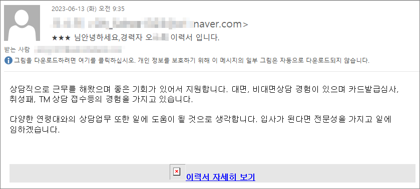 | 구인구직사이트와 유사한 도메인을 통해 유포중인 입사지원서 위장 악성파일 주의! (0) | 2023.06.16 |