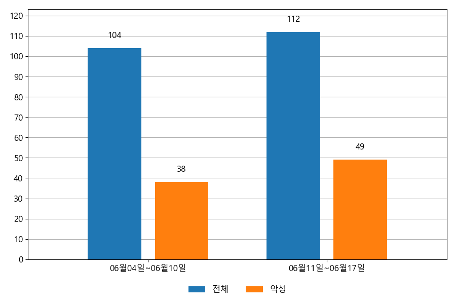ESRC에서는 자체 운영 중인 이메일 모니터링 시스템의 데이터를 통해 이메일 중심의 공격이 어떻게 이루어지고 있는지 공유하고 있습니다. 다음은 06월 11일~06월 17일까지의 주간 통계 정보입니다.