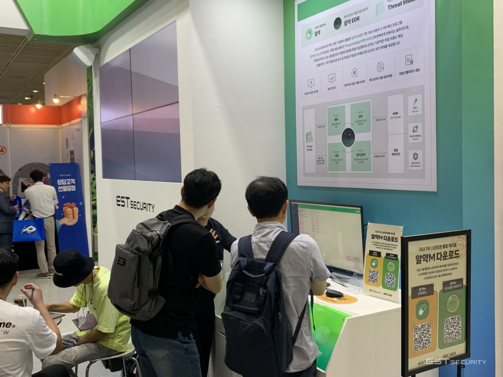 이스트시큐리티 부스에서는 문서중앙화 솔루션인 시큐어디스크, 인터넷디스크와 위협 대응 솔루션 알약 EDR, Threat Inside를 선보였으며, 다양한 기업 및 기관에서 부스에 방문해 관심을 보여주셨습니다. 부스 내에서는 제품 질문과 상담, 자료 요청이 쇄도하는 등 많은 주목을 받았습니다.