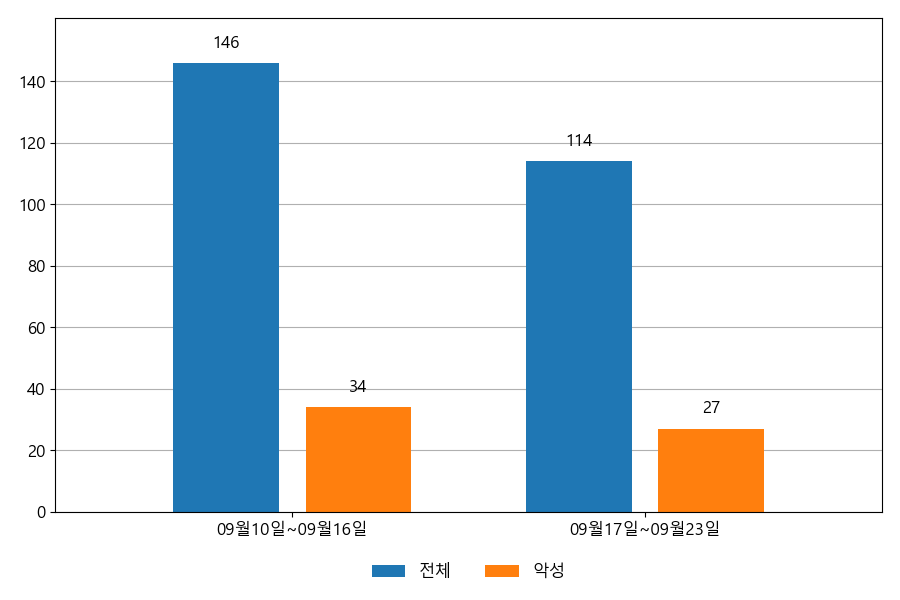 ESRC에서는 자체 운영 중인 이메일 모니터링 시스템의 데이터를 통해 이메일 중심의 공격이 어떻게 이루어지고 있는지 공유하고 있습니다. 다음은 09월 17일~09월 23일까지의 주간 통계 정보입니다.