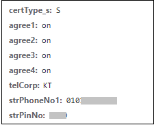 본인인증 피싱 페이지에서는 통신사와 휴대폰번호, 그리고 또 한번의 카드 비밀번호 입력을 요구하며, 입력한 정보는 추가로 공격자에게 전송되며 공격이 종료됩니다.