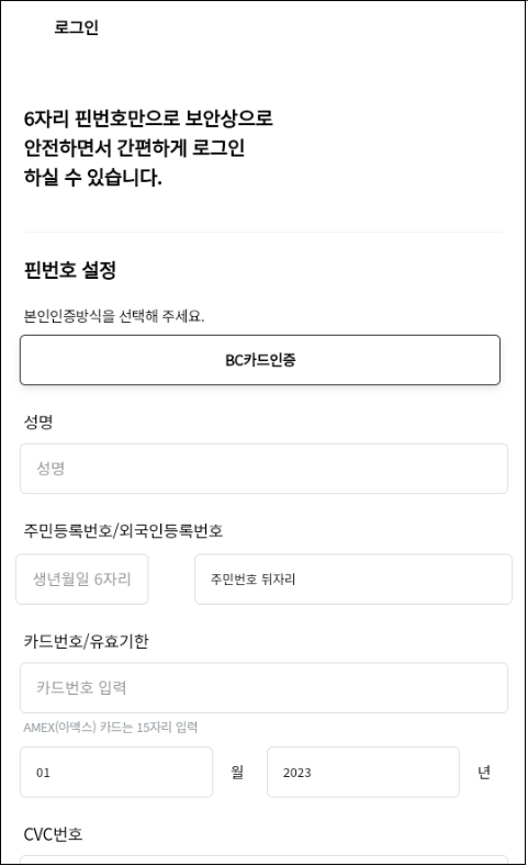 스미싱 내 링크를 클릭하면, 핀번호 설정 페이지를 위장한 피싱 페이지로 접속됩니다.
