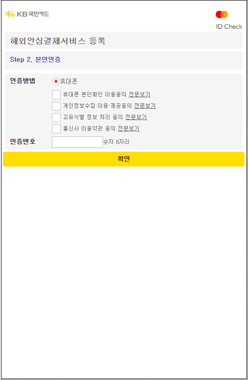 정상 카드번호를 입력하면 입력된 데이터가 공격자에게 전송됨과 동시에 본인인증 피싱 페이지로 이동합니다.