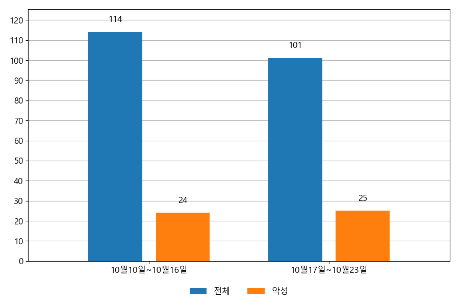 ESRC에서는 자체 운영 중인 이메일 모니터링 시스템의 데이터를 통해 이메일 중심의 공격이 어떻게 이루어지고 있는지 공유하고 있습니다. 다음은 10월 17일~10월 23일까지의 주간 통계 정보입니다.