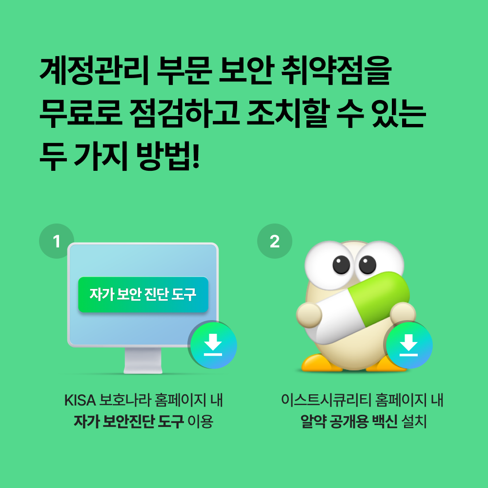 ① KISA 보호나라 홈페이지의 자가 보안진단 도구 이용 👉바로 가기