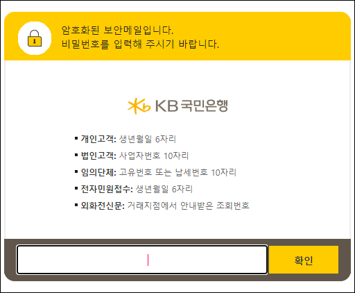 첨부파일을 확인할 경우 위와 같은 화면을 볼 수 있으며 자동으로 피싱사이트로 접근하게 됩니다. 피싱 사이트는 로그인화면을 통해 개인정보를 수집하도록 되어 있습니다. 은행 및 증권 같은 금융권 사이트의 경우 피싱의 주요 사칭 대상이기 때문에 이와 같은 이메일을 확인할 경우 주의가 필요합니다.