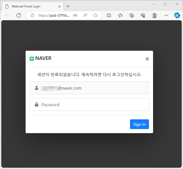 연결된 가짜 포털 재로그인 페이지에 기재한 정보는 별도의 서버로 전송되어 공격자에게 전달됩니다.