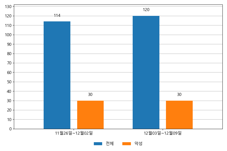 ESRC에서는 자체 운영 중인 이메일 모니터링 시스템의 데이터를 통해 이메일 중심의 공격이 어떻게 이루어지고 있는지 공유하고 있습니다. 다음은 12월 03일~12월 09일까지의 주간 통계 정보입니다.
