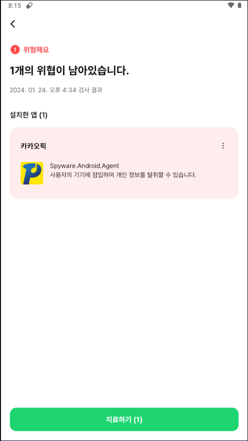 현재 알약M에서는 해당 악성앱에 대해 Spyware.Android.Agent로 탐지중에 있습니다.