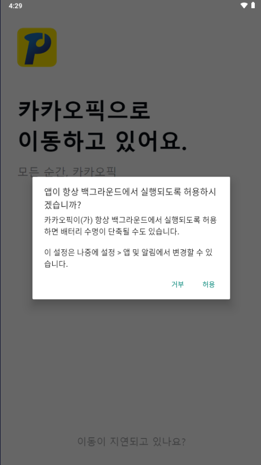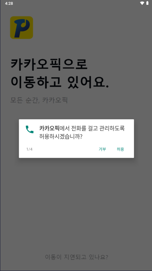 사용자가 내려받은 apk를 실행하면 다음과 같이 바탕화면에 '카카오픽' 이름의 악성 앱이 생성되며 실행 시 전화, SMS, 주소록, 미디어파일 등과 같은 권한들을 요구합니다.
