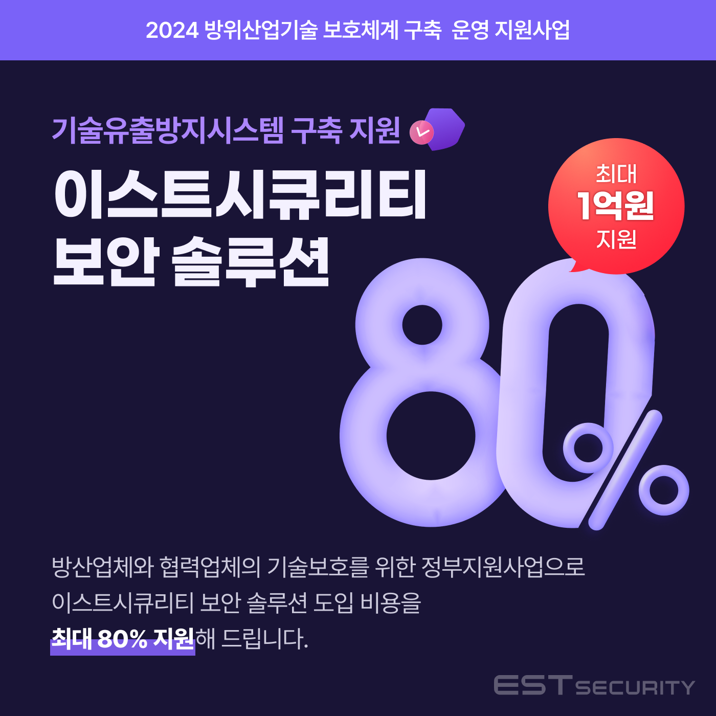 솔루션 구축비용의 최대 80%를 지원 받고, 이스트시큐리티와 함께 기술 보호 수준을 향상하세요!