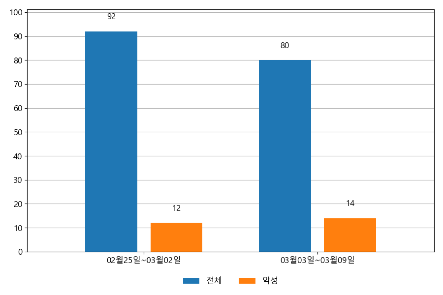 ESRC에서는 자체 운영 중인 이메일 모니터링 시스템의 데이터를 통해 이메일 중심의 공격이 어떻게 이루어지고 있는지 공유하고 있습니다. 다음은 03월 03일~03월 09일까지의 주간 통계 정보입니다.