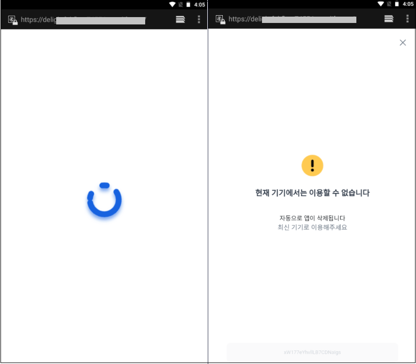 사용자 휴대폰에 설치가 완료되면 브라우저 창을 띄워 마치 데이터를 로딩하는 듯한 화면을 보여주다가 현재 기기에서는 이용할 수 없다며 자동으로 앱을 삭제하는 것처럼 위장합니다.