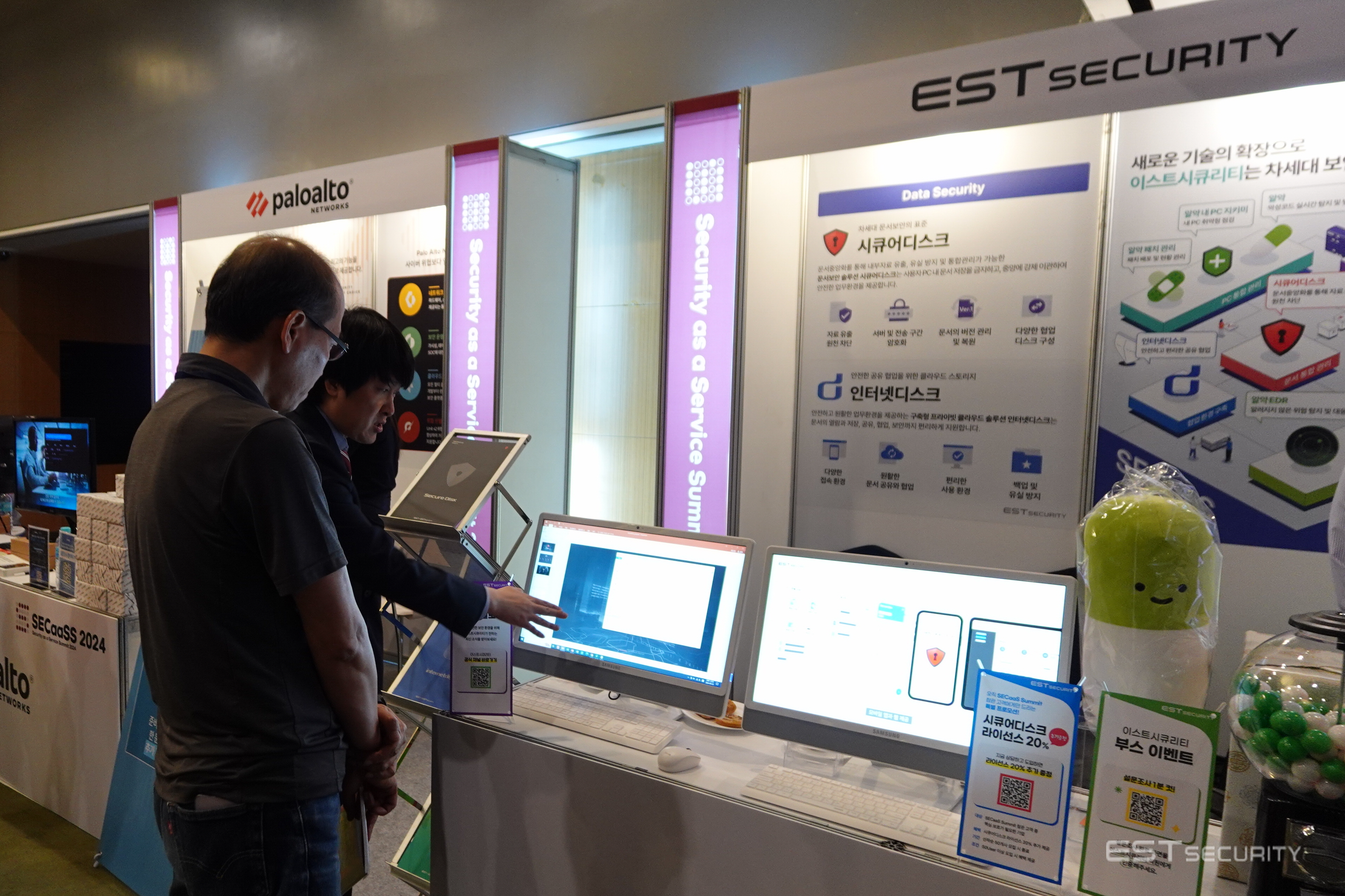 이스트시큐리티는 이번 행사에서 기업 및 기관 보안 담당자를 대상으로 문서중앙화 솔루션 시큐어디스크·인터넷디스크를 소개하였으며, 부스를 찾아주신 많은 분들의 관심과 성원으로 행사를 성공적으로 마칠 수 있었습니다.